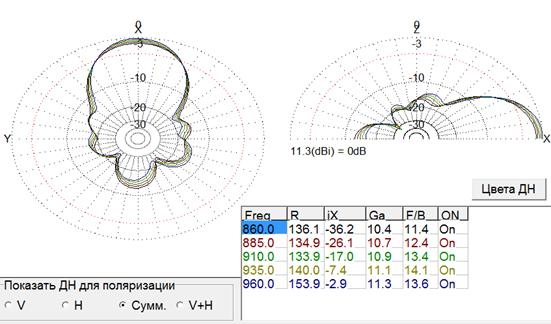 показывает, что характеристики антенны наиболее стабильны в диапазоне частот