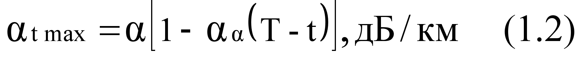 Обслуживаемый усилительный участок ставим между вторым и третьим необслуживаемыми усилительными участками. Обслуживаемый усилительный участок выбирается с двухчастотной автоматической регулировкой усиления (линия короткая). Разбиваем секцию ОП-ОУП на усилительные участки, длина усилительного участка: аном—номинальное затухание усилительного участка, аном =51 дБ. t max—коэффициент затухания кабеля на верхней частоте линейного спектра К60П при максимальной температуре грунта.(для 252 кГц). температурный коэффициент километрического затухания при f = 252 кГц, показывает, как изменится если температура увеличится на один градус. Т—исходная температура, при которой известна , Т = +18С, t . = 2,61 дБ/км