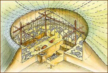 с четырьмя камерами по углам. Через одну из этих камер шёл ход к погребению
