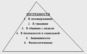Рис.10 Прохождение ступеней кандидата при приеме на работу При приеме на работу от кандидата требуется документы, которые предоставляют информацию о нем (паспорт, трудовая книжка, страховое свидетельство государственного пенсионного страхования, ИНН, резюме, рекомендации). 1.4 Мотивация как метод управления персоналом трудовой менеджмент управление персонал В самом общем виде мотивация человека к деятельности понимается как совокупность движущих сил, побуждающих человека к осуществлению определенных действий. Эти силы находятся вне и внутри человека и заставляют его осознанно или же не осознанно совершать некоторые поступки. При этом связь между отдельными силами и действиями человека опосредована очень сложной системой взаимодействий, в результате чего различные люди могут совершенно по разному реагировать на одинаковые воздействия со стороны одинаковых сил. Более того, поведение человека, осуществляемые им действия в свою очередь также могут влиять на его реакцию на воздействия, в результате чего может меняться как степень влияния воздействия, так и направленность поведения, вызываемая этим воздействием. Принимая во внимание сказанное, можно попытаться дать более детализированное определение мотивации. Мотивация - это совокупность внутренних и внешних движущих сил, которые побуждают человека к деятельности, задают границы и формы деятельности и придают этой деятельности направленность, ориентированную на достижение определенных целей. Влияние мотивации на поведение человека зависит от множества факторов, во многом индивидуально и может меняться под воздействием обратной связи со стороны деятельности человека [2, 10]. Для того чтобы всесторонне раскрыть понятие мотивации, необходимо рассмотреть три аспекта этого явления: · что в деятельности человека находиться в зависимости от мотивационного воздействия. · каково соотношение внутренних и внешних сил; · как мотивация соотносится с результатами деятельности человека. Прежде чем приступить к рассмотрению этих вопросов, остановимся на уяснении смысла основных понятий, которые будут использованы в дальнейшем. Потребности - это то, что возникает и находится внутри человека, что достаточно общее для разных людей, но в то же время имеет определенное индивидуальное проявление у каждого человека. Наконец, это то, от чего человек стремится освободиться, так как, пока потребность существует, она дает о себе знать и "требует" своего устранения. Люди по-разному могут пытаться устранять потребности, удовлетворять их, подавлять или не реагировать на них. Потребности могут возникать как осознанно, так и неосознанно. При этом не все потребности осознаются и осознанно устраняют. Если потребность не устранена, то это не предполагает, что она устранена навсегда. Большинство потребностей периодически возобновляются, хотя при этом они могут менять форму своего конкретного проявления, а также степень настойчивости и влияния на человека. Мотив - это то, что вызывает определенные действия человека. Мотив находится "внутри" человека, имеет "персональный" характер, зависит от множества внешних и внутренних по отношению к человеку факторов, а также от действия других, возникающих параллельно с ним мотивов. Мотив не только побуждает человека к действию, но и определяет, что над